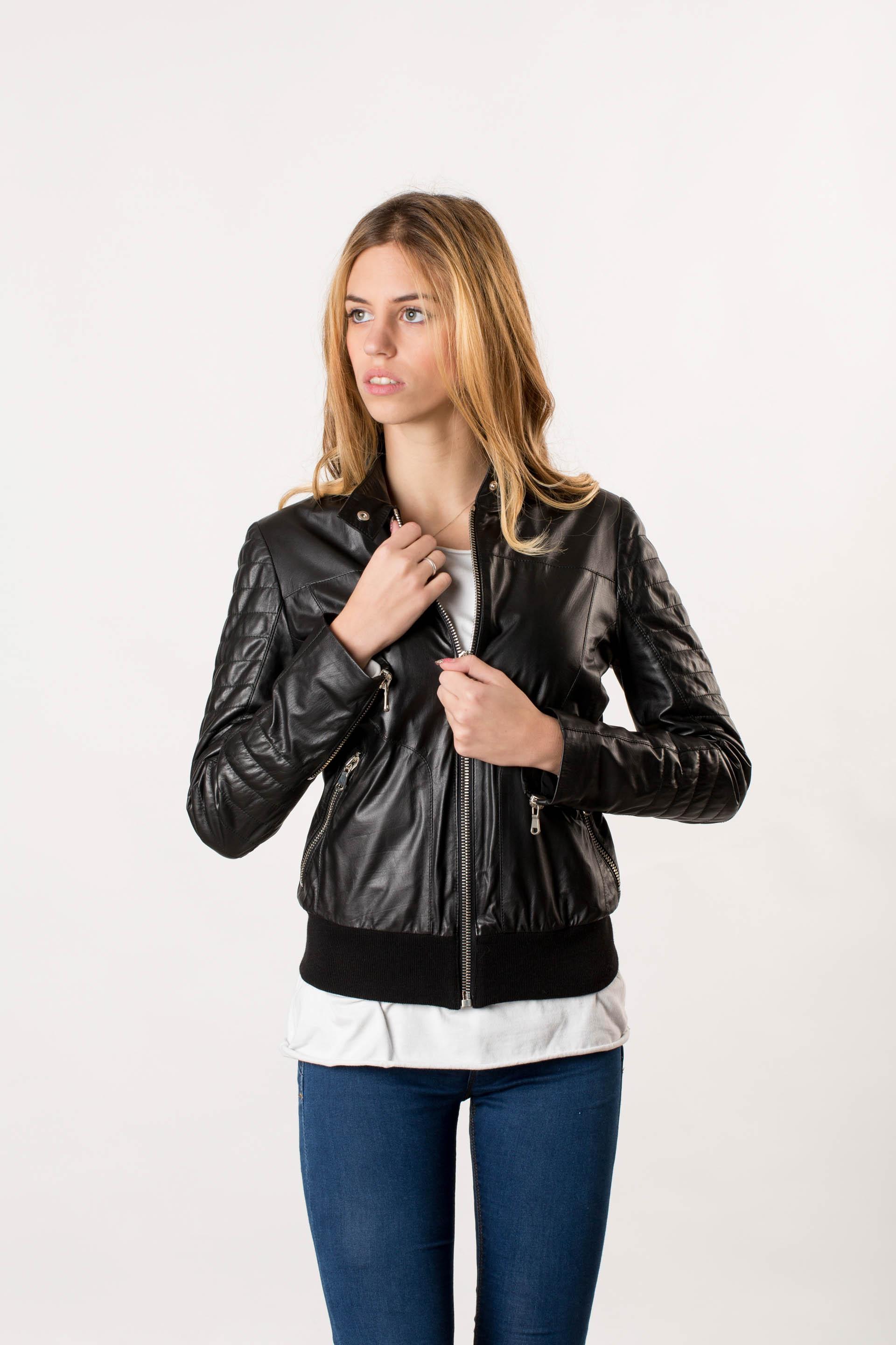 Giubbotto in pelle per donna colore Nero "Agnese" - Negro Pelle