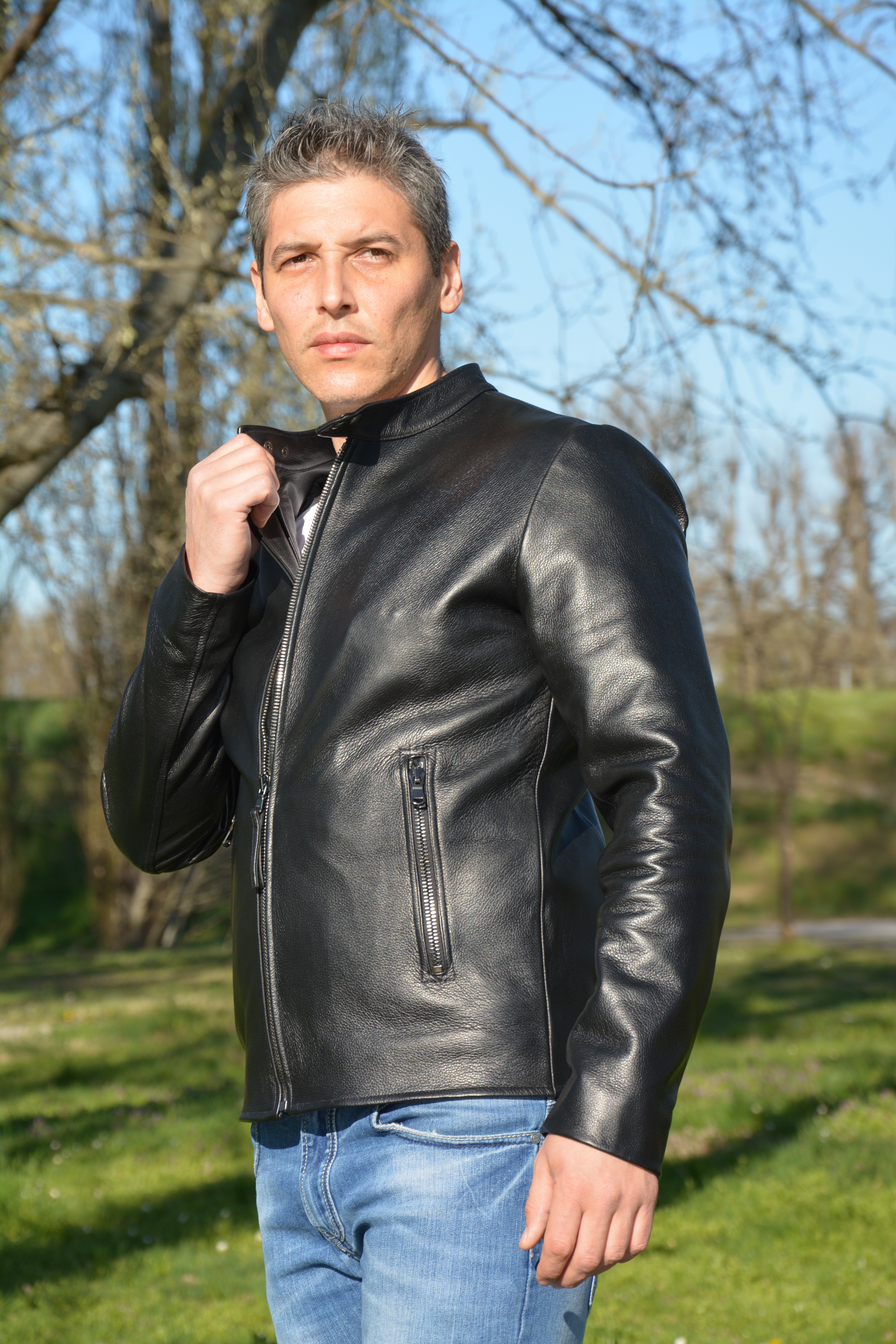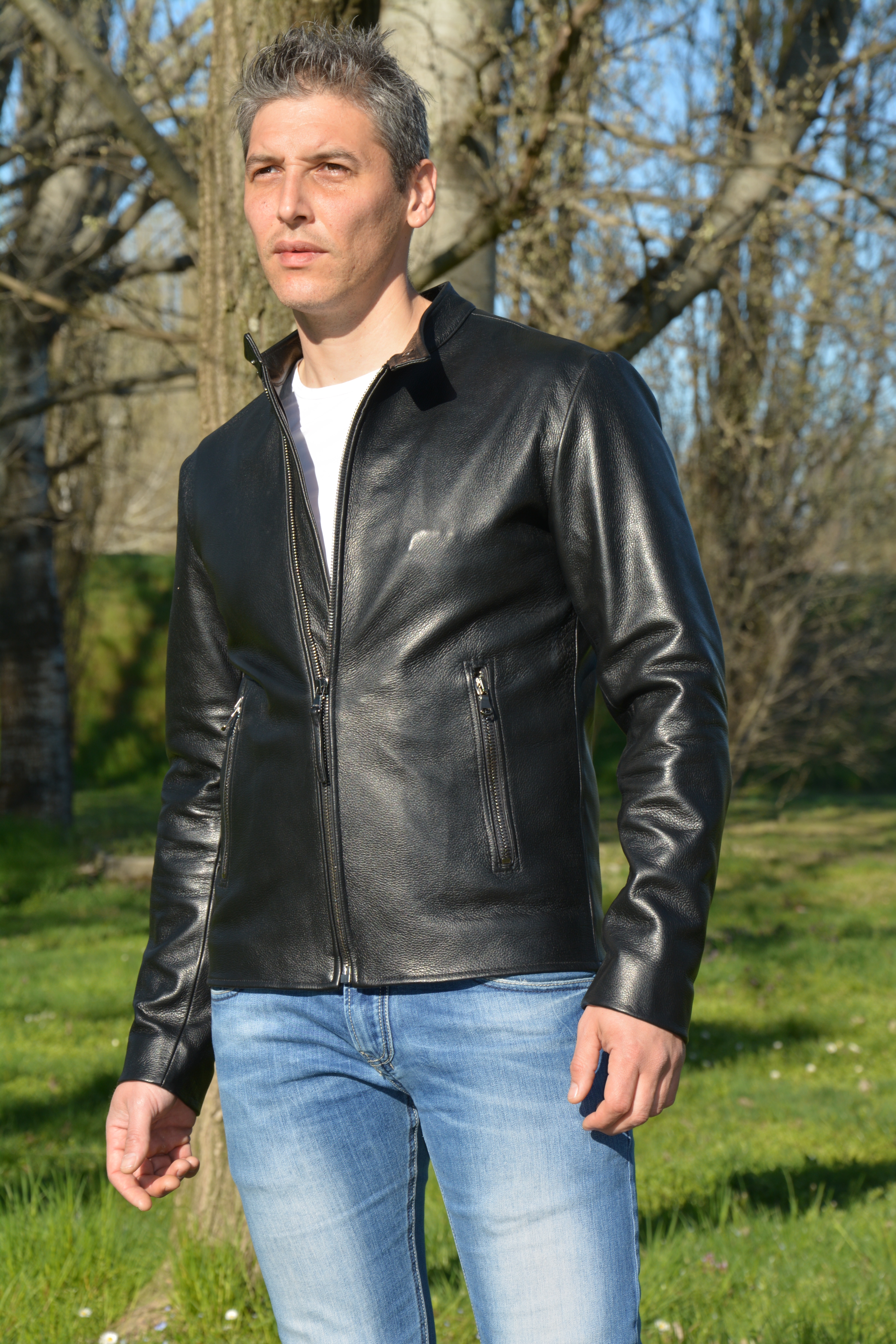 Giubbino uomo mod Rock in nappa color nero, foderato e con taschino interno. Due tasche laterali con zip a vista. Maniche con zip ai polsi. Allacciatura tramite zip . Produzione italiana di alta qualità.